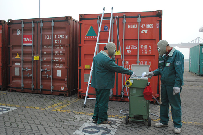 日前,中南地區(qū)第一臺最現(xiàn)代化的“移動式微電腦施藥器”在長沙新港投入使用。近日,湖南省進出口檢驗檢疫局技術(shù)人員,在長沙新港首次對國際集裝箱采用封閉式消毒、熏蒸。這是我省使用的第一臺消毒熏蒸設(shè)備,結(jié)束商檢開箱施藥消毒熏蒸的歷史。