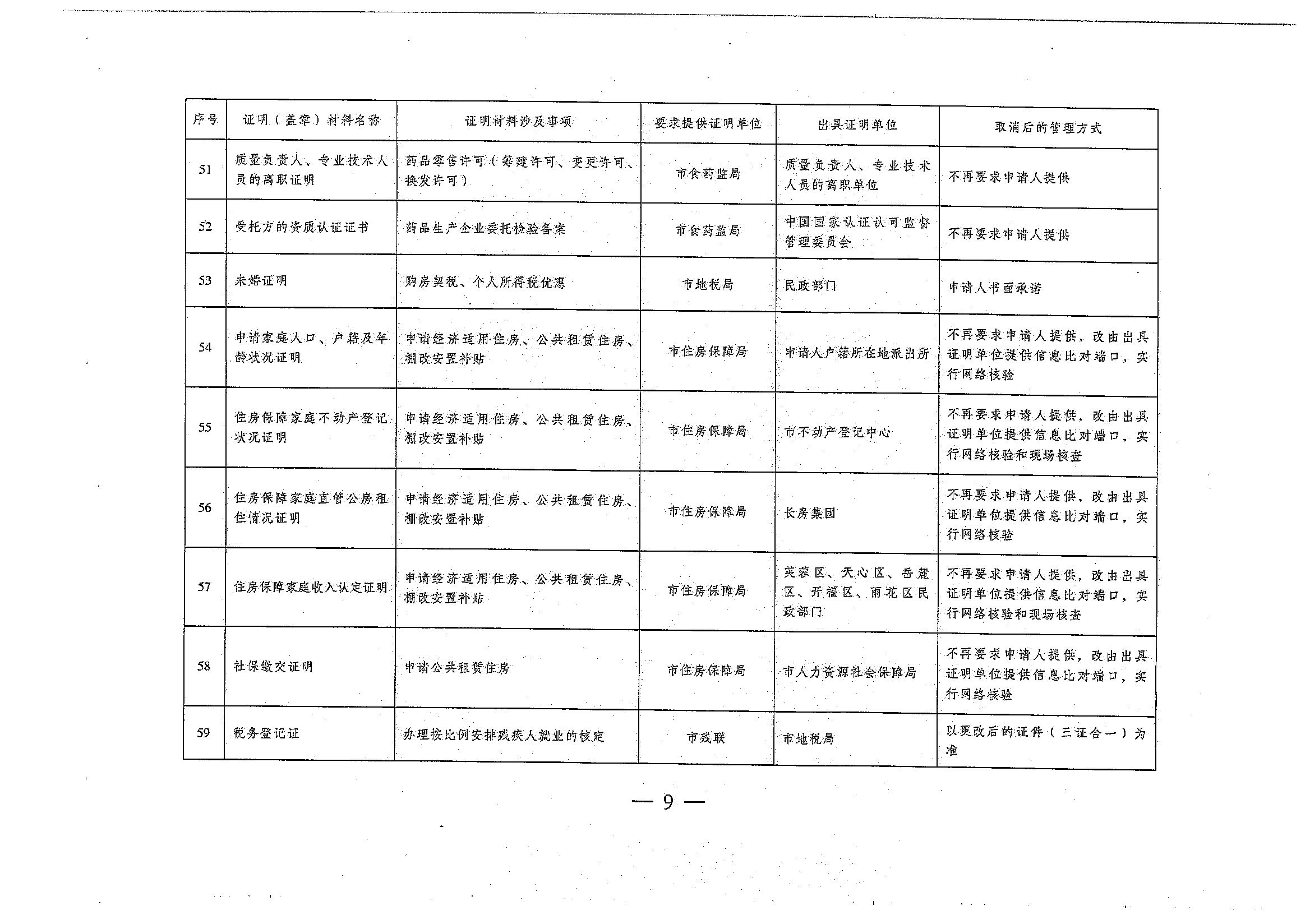 關(guān)于取消一批市直單位要求申請人提供的證明材料的通知