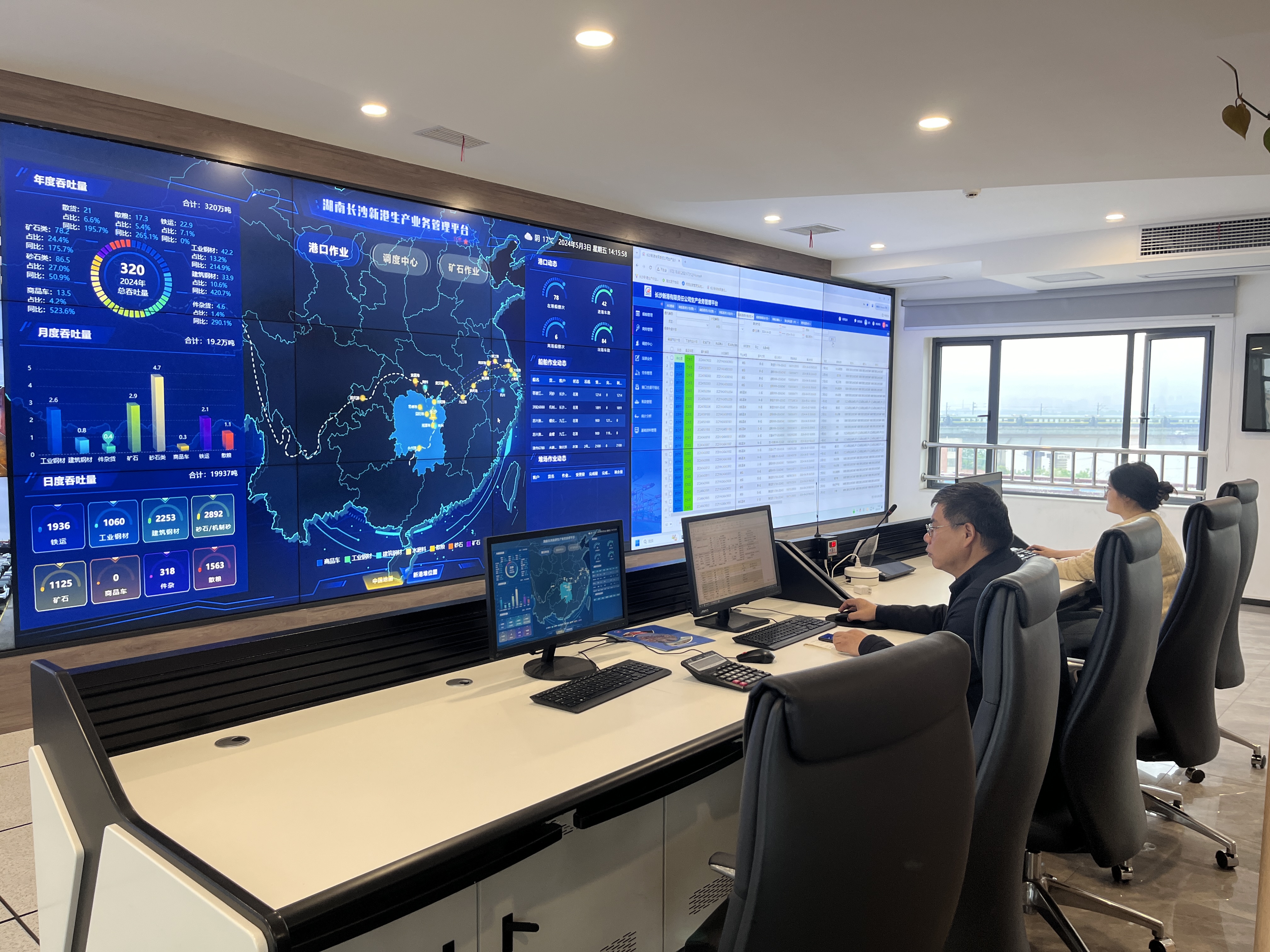 圖為“五一”期間,長沙新港智控調度中心調度港區運行。