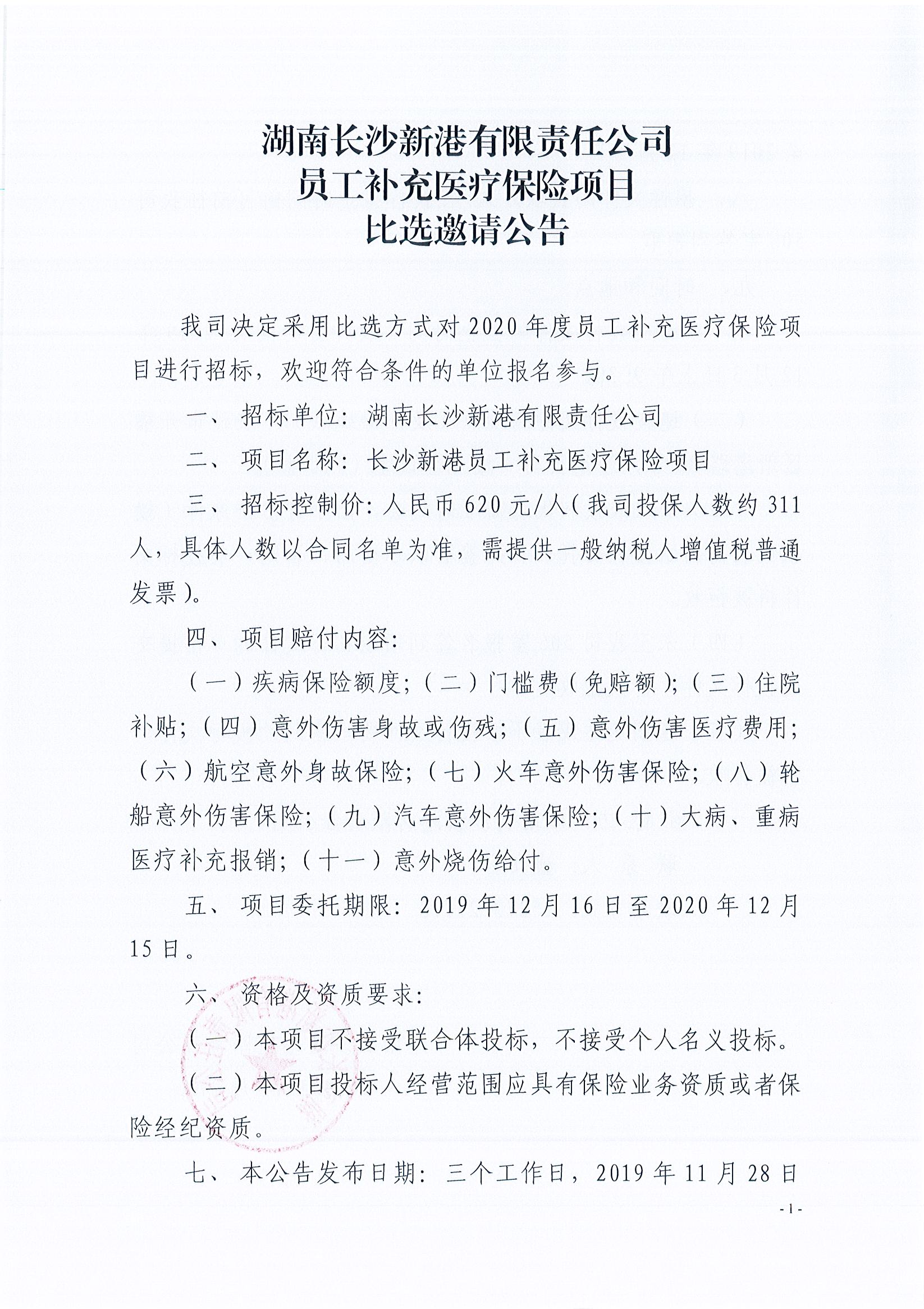 湖南長沙新港有限責任公司員工補充醫療保險項目比選邀請公告