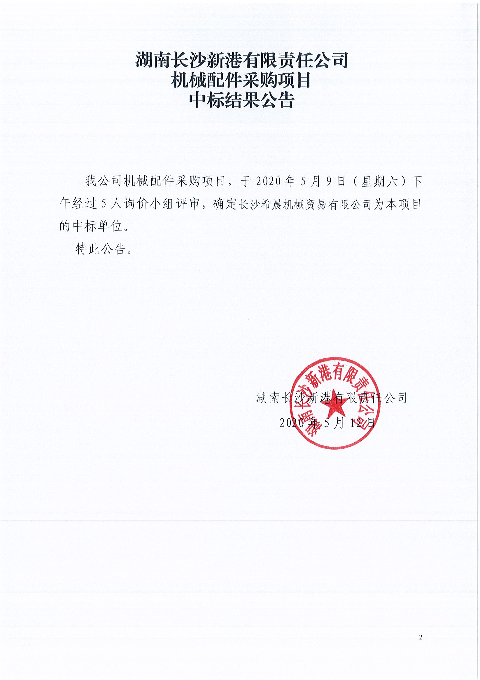 機(jī)械配件采購項(xiàng)目《中標(biāo)結(jié)果公告》