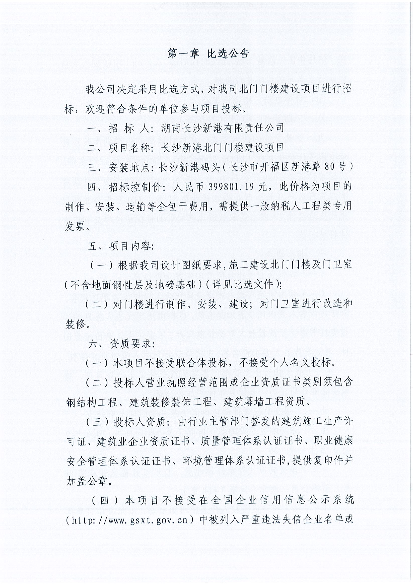 長沙新港北門門樓建設項目《比選公告》