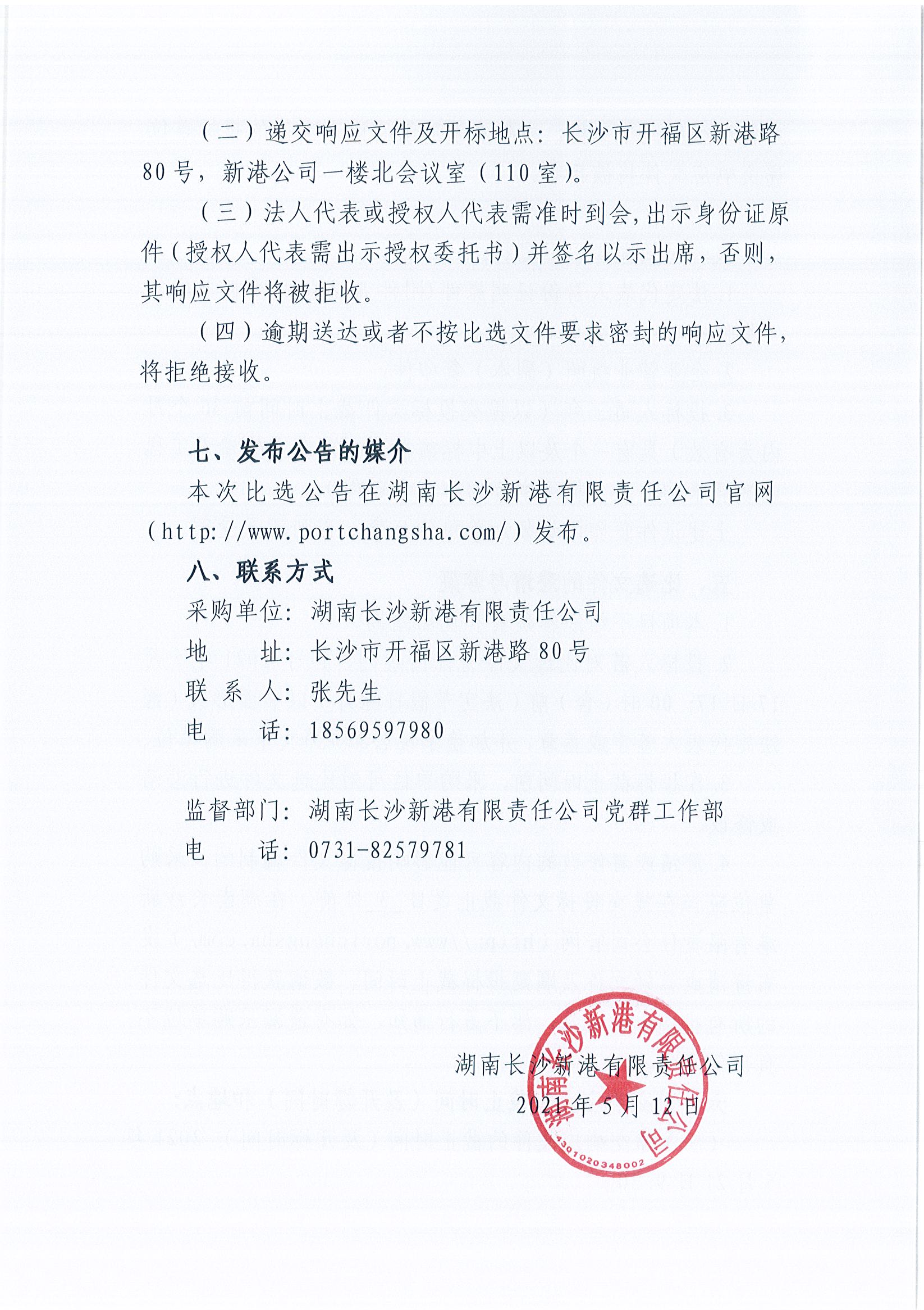 湖南長沙新港有限責任公司信息化建設(第一階段)招標代理服務機構比選公告