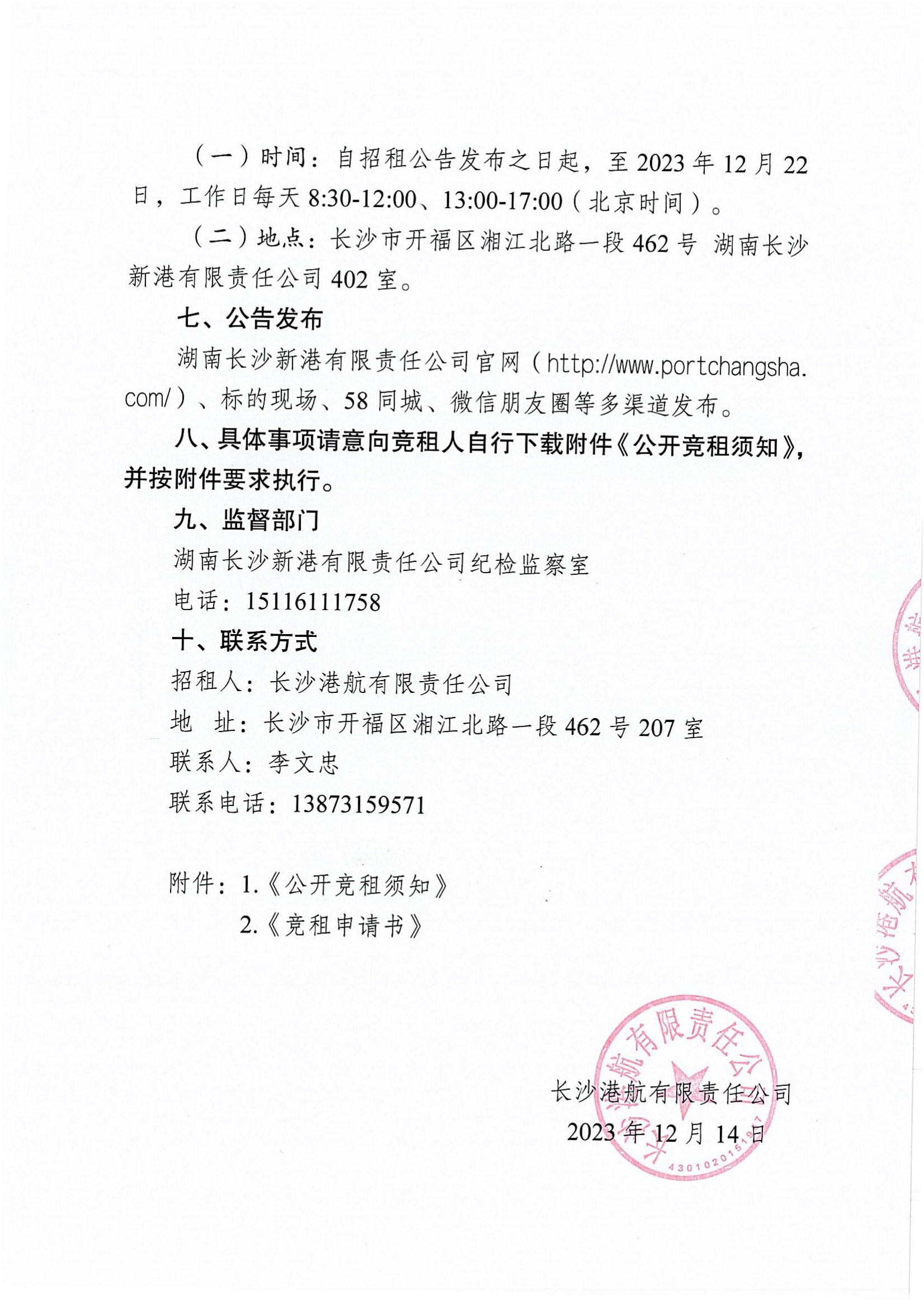 長(zhǎng)沙港航有限責(zé)任公司招租公告