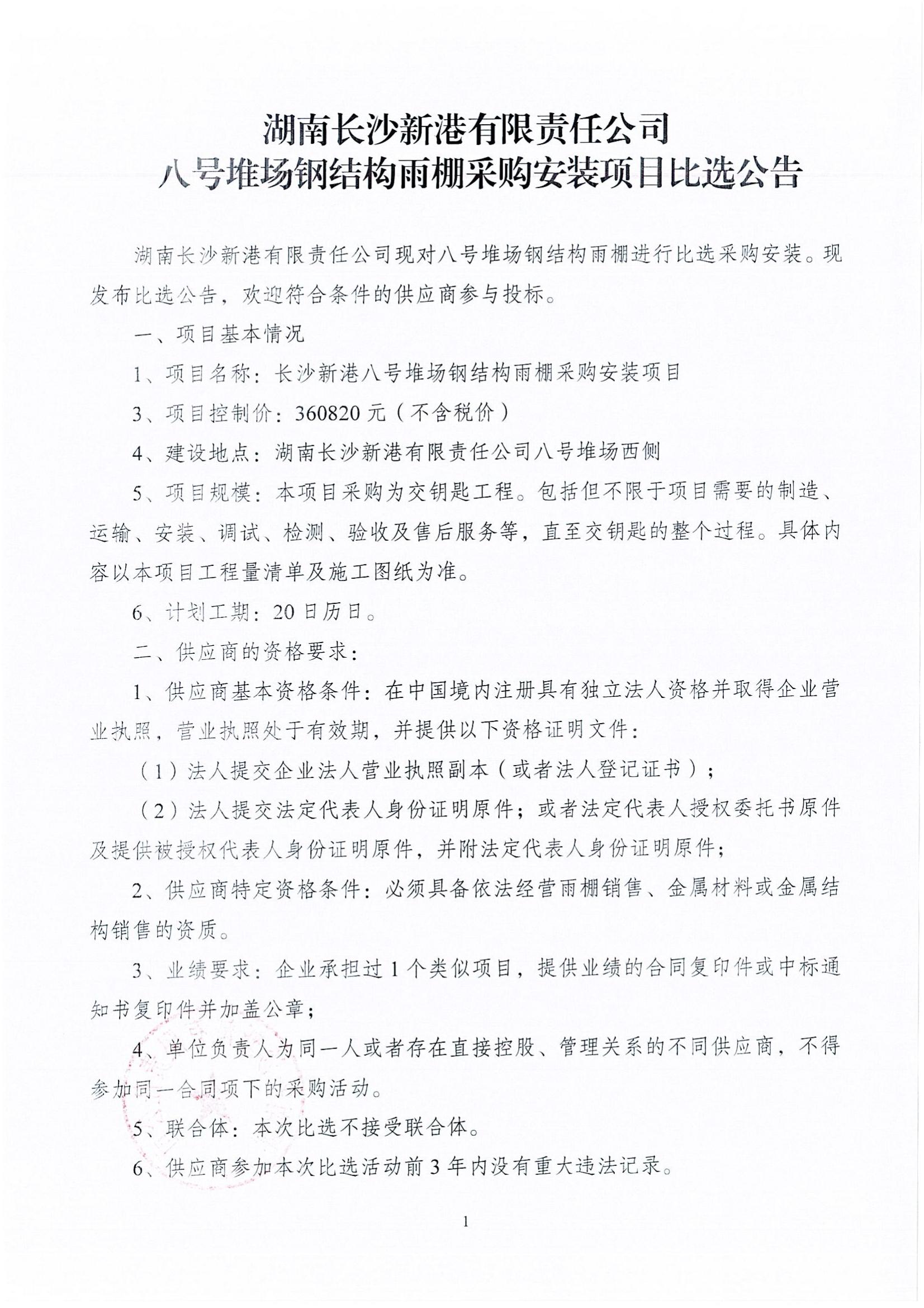 長沙新港八號(hào)堆場鋼結(jié)構(gòu)雨棚采購安裝項(xiàng)目比選公告